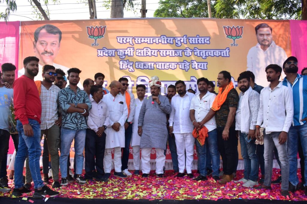 दुर्ग सांसद व कुर्मि क्षत्रिय समाज के अध्यक्ष विजय बघेल का शहर आगमन हुआ, जहां महाकाल सेना के संस्थापक व रेल्वे भाजपा के उपाध्यक्ष तामेश कश्यप के नेतृत्व में महाकाल के हज़ारों की संख्या में कार्यकर्ताओं ने इंदू चौक में भव्य स्वागत किया, श्री बघेल स्वागत से काफ़ी गदगद नज़र आए व कार्यकर्ता भी अपने नेता को अपने बीच पा कर उत्साहित थे, सांसद ने इंदिरा गांधी चौक में समापन मंच से इस रैली व कार्यक्रम की प्रशंसा की व सदैव साथ रहने की बात की, युवाओं को देश का भविष्य बताया व हर संभव सहयोग करने की इच्छा जताई । सभा को आभार व्यक्त करते हुए तामेश ने सभी कार्यकर्ताओं को धन्यवाद कहा,और आगामी चुनाव के लिए कमर कसने को तैयार रहने का संकेत दिया।
