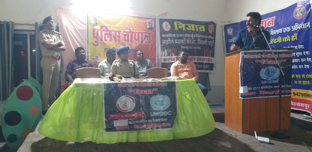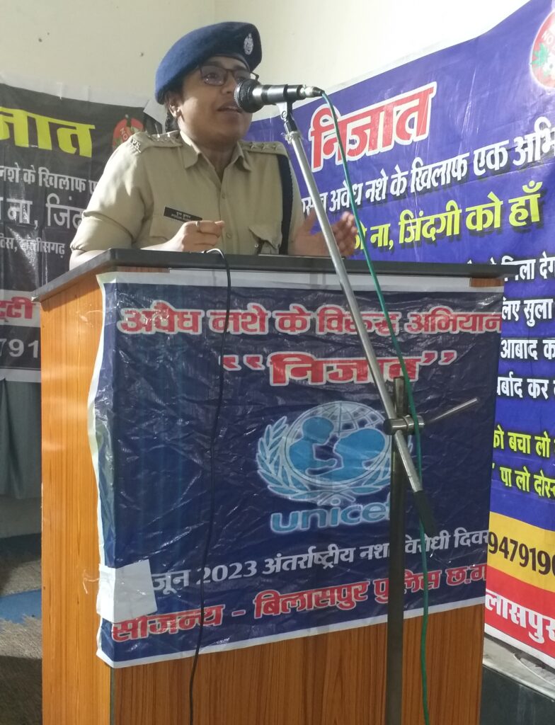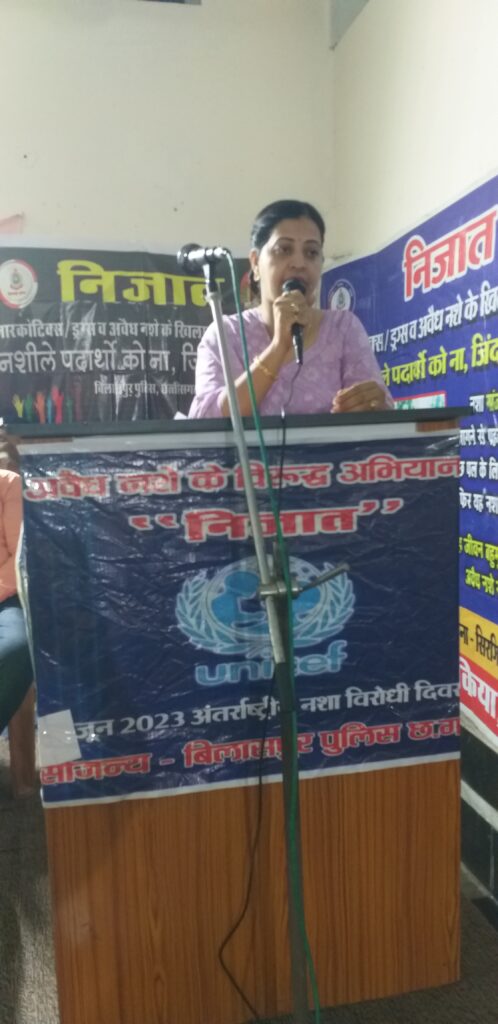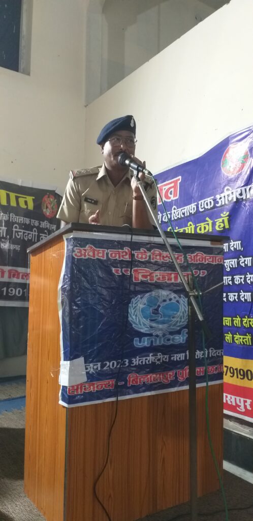 राज भारत न्यूज / छत्तीसगढ़ / 05 जुलाई 2023 / बिलासपुर :- सिरगिट्टी क्षेत्र के सेंट जेवियर्स स्कूल में आज संध्या सिरगिट्टी पुलिस ने नशे से निजात अभियान कार्यक्रम का आयोजन किया जिसमें क्षेत्र के जन प्रतिनिधि सहित बड़ी संख्या में युवा गण उपस्थित थे। नशे से निजात अभियान के तहत आयोजित उक्त कार्यक्रम में बतौर मुख्य अतिथि पहुँची बाल संरक्षण अधिकार आयोग की सदस्य पूजा सतनाम खनूजा ने इस अभियान की भूरी भूरी प्रशंसा करते हुए कहा इस अभियान से नशे की गिरफ्त बच्चों की सुरक्षा होगी साथ ही अपराध में भी कमी आएगी इसलिए हमारे आयोग ने भी बच्चों के लिए एक विशेष योजनाओं के तहत कार्य का आयोजन कर रही है जिससे बच्चों का कल्याण होगा।