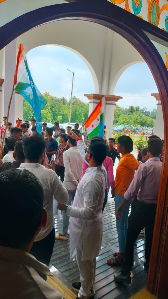 राज भारत न्यूज़ / छत्तीसगढ़ / 08 सितंबर 2023 / बिलासपुर :- शुक्रवार को रंजेश सिंह एनएसयूआई प्रदेश सचिव के नेतृत्व में सैकड़ो की संख्या में एनएसयूआई के कार्यकर्ता व छात्र छात्राओं ने पांच सूत्रीय माँगों को लेकर अटल बिहारी वाजपेई विश्वविद्यालय कुलपति को ज्ञापन सौंपा है।