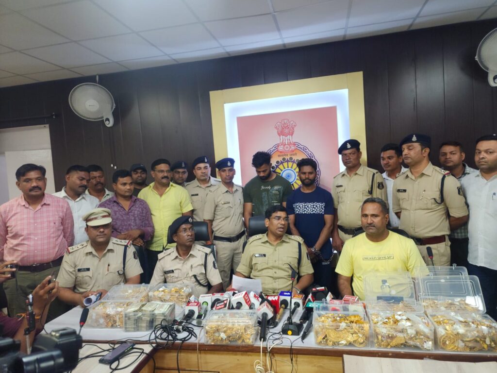 पुलिस ने बताया 19.08.2023 को श्रीराम क्लाथ मार्केट स्थित 05 दुकान एवं दिनांक 25.08.20023 को सत्यम चौक से अग्रसेन चौक के बीच स्थित 05 बड़ी दुकानों कुल 10 दुकानों में अज्ञात चोर द्वारा चोरी की घटना को अंजाम दिया गया था। जिस पर आईजी अजय यादव, पुलिस अधीक्षक संतोष कुमार सिंह द्वारा उक्त चोर को पकड़ने हेतु अलग अलग टीम बनाकर निर्देश दिये गये थे जिसके पालन में अतिरिक्त पुलिस अधीक्षक शहर राजेन्द्र जायसवाल नगर पुलिस अधीक्षक सिविल लाईन संदीप पटेल (भासे) के मार्गदर्शन में थाना प्रभारी सिविल लाईन प्रदीप आर्य एवं एसीसीयू प्रभारी कृष्णा साहू के नेतृत्व टीम बनाकर मुखबीर तंत्र को मजबूत कर एवं तकनिकी साक्ष्यों के आधार पर लगभग 300 सीसीटीव्ही फुटेज को खंगालने पर आरोपी जिला कबीरधाम का निवासी होना पाया गया जिसे पकड़ने हेतु घटना दिनांक से टीम आरोपी के निवास एवं रिस्तेदारों के निवास के आसपास डेरा जमाये हुए थी जो दिनांक 28.09.2023 को घटना के मुख्य आरोपी लोकेश श्रीवास अपने साथी शिवा चन्द्रवंशी के साथ अपने निवास के आसपास दिखाई दिया कि सूचना पर रेड कार्यवाही की गई जहां पर उसका सहयोगी शिवा चन्द्रवशी पिता बेनी माधव चंद्रवंशी उम्र 23 वर्ष निवासी गायत्री मंदिर के पास कवर्धा मिला एवं मुख्य आरोपी लोकेश श्रीवास घर की खिड़की से कूद कर भाग गया। शिव चन्द्रवशी को अभिरक्षा में लेकर पूछताछ की गई जिसने उपरोक्त घटनाओं में लोकेश श्रीवास को साथ रहकर घटना कारित करना स्वीकार किया। जिसके कब्जे से लगभग 23 लाख रुपये की मशरूका बरामद किया गया। मुख्य आरोपी लोकेश श्रीवास को बिलासपुर पुलिस की एसीसीयू सिविल लाईन थाने के टीम ने स्मृतिनगर थाना क्षेत्र दुर्ग भिलाई के किराये के मकान से घेराबंदी कर दिल्ली पुलिस के सहयोग से पकड़ा गया। जिसे अभिरक्षा में लेकर पूछताछ करने पर उसके पास से बिलासपुर के विभिन्न मामलों में चोरी गए 12 लाख 50 हजार रूपये नगदी एवं साढ़े अठारह किलो सोना के जेवरात व हीरे बरामद की गई। लोकेश श्रीवास द्वारा कुछ दिनों पूर्व दिल्ली में हुई बड़ी चोरी की घटना में शामिल होना बताया एवं थाना सिविल लाईन क्षेत्र अंतर्गत श्रीराम क्लाथ मार्केट स्थित 05 दुकानों पूजा गीन अपार्टमेंट, संस्कृति रेडिमेट शोरूम, नरेश फैशन, श्रीराम क्लाथ स्टोर तथा सत्यम चौक से अग्रसेन चौक के बीच स्थित 05 दुकानी प्लेटिनम शू-मॉल, बासुरी मैचिंग सेंटर मान्यवर शोरूम, कामेश टेडर्स, एवं टाईम पैलेस, में चोरी की घटना को अंजाम देना बताया है। लोकेश श्रीवास से पुछताछ जारी है और भी खुलासे होने की संभावना है।