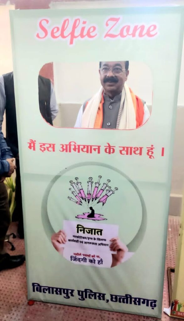 राज भारत न्यूज़ / छत्तीसगढ़ / 03 फरवरी 2024 / शनिवार / बिलासपुर :- जिले के वरिष्ठ पुलिस अधीक्षक संतोष सिंह के चलाये गए अभियान नशे से निजात वैसे तो किसी पहचान की मोहताज नही है क्योंकि देश विदेश से लेकर बॉलीवुड सेलिब्रिटीज भी इस अभियान की प्रशंसा कर शोसल मीडिया में अपना वीडियो वायरल करते हुए अपना समर्थन दिया है। वही अन्य सामाजिक संस्थाओं ने भी इस अभियान को नशे मुक्त जीवन के लिए मिल का पत्थर बताते हुए अनेकों कार्यक्रम भी आयोजित किये है। इस अभियान ने कईयों को नशा छुड़वाने में कारगर भी रहा है जिसकी आज प्रशंसा करते हुए राज्य के उप मुख्यमंत्री अरुण साव ने भी अपना समर्थन दिया और कार्यक्रम में शामिल हुए है।