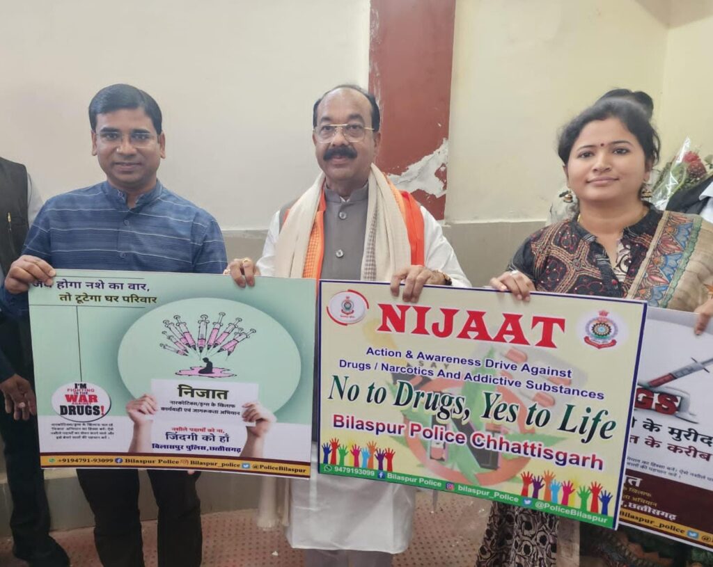 उपमुख्यमन्त्री छत्तीसगढ़ अरुण साव द्वारा पुलिस के निजात अभियान की प्रशंसा करते हुए इसमें सभी को शामिल होने की अपील की। सभी को नशे से दूर रहने को कहा। श्री साव सरकार के सख़्त निर्देश है कि अवैध नशे पर रोक लगे। इस मौके पर उप मुख्यमंत्री अरुण साव के साथ वरिष्ठ पुलिस अधीक्षक संतोष सिंह व अतिरिक्त पुलिस अधीक्षक ( ग्रामीण ) अर्चना झा थी।