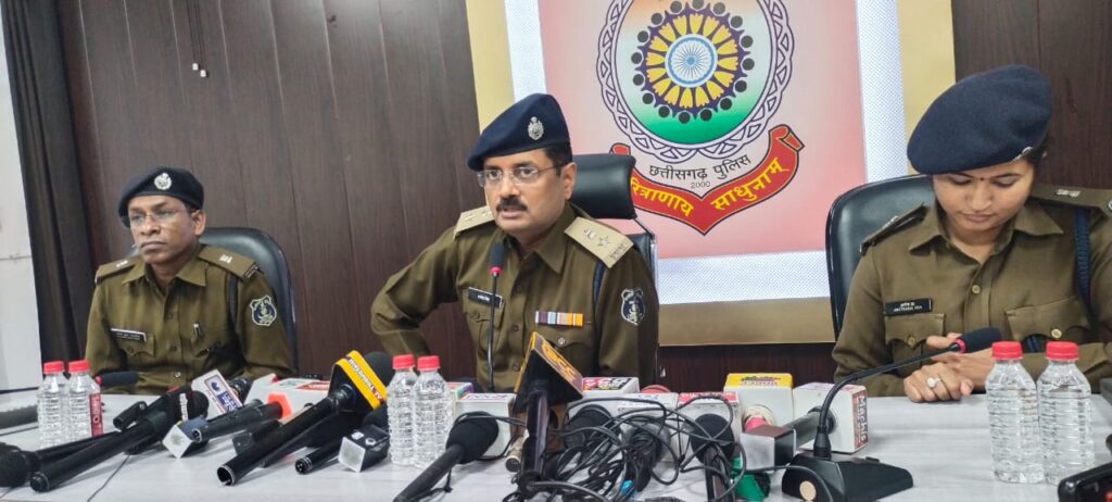 बिलासा गुड़ी में आयोजित पत्रकार वार्ता में एसपी के साथ अतिरिक्त पुलिस अधीक्षक राजेन्द्र जायसवाल व अतिरिक्त पुलिस अधीक्षक ग्रामीण अर्चना झा भी उपस्थित रही।