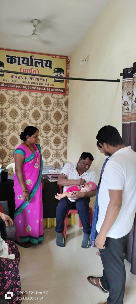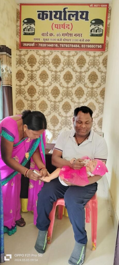 राज भारत न्यूज़ / छत्तीसगढ़ / 03 मार्च 2024 / रविवार / बिलासपुर ::- गणेश नगर वार्ड नं. 46 में वार्ड पार्षद इब्राहिम खान (अब्दुल) के द्वारा बच्चो को पल्स पोलियों टीकाकरण ड्रॉप दो बूंद पीला कर उद्धघाटन किये । पार्षद कार्यालय में 335 बच्चे, ओवर ब्रिज के पास तीनो आंगनबाड़ी में 616 बच्चे, नयापारा आंगनबाड़ी में 994 बच्चे इस तरह से वार्ड में कुल 1945 बच्चो को पल्स पोलियों टीकाकरण ड्रॉप पिलाया गया। वार्ड पार्षद इब्राहिम खान अब्दुल ने समस्त आंगनबाड़ी कार्यकर्ता सहायिका मितानिन बहनों का आभार व्यक्त किए जिनके माध्यम से टीकाकरण सफल पूर्वक किया गया।