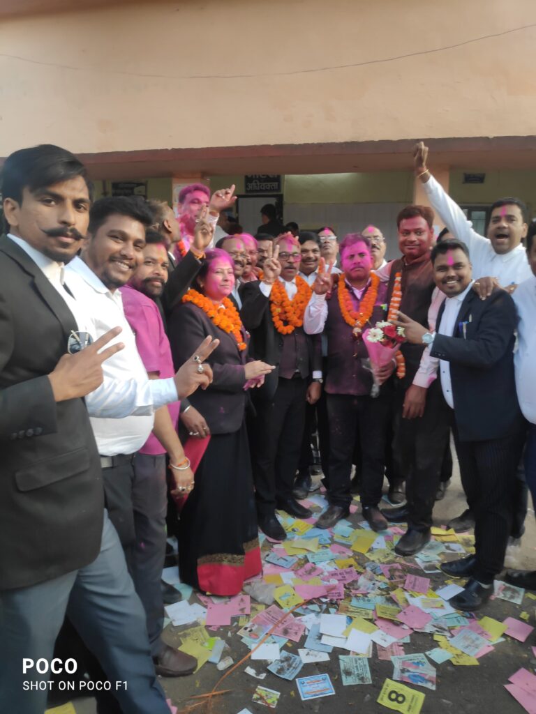 अधिवक्ता संघ के चुनाव में अधिवक्ता रवि पांडे ने कमल सिंह को हराकर सचिव पद पर जीत हासिल किए वही महिला उपाध्यक्ष पद पर अधिवक्ता ज्योति गुप्ता 350 मतों से विजयी घोषित हुई । शहर सचिव पद के लिए परमेश्वर प्रसाद पाटिल 80 वोटों से चुनाव में जीत हासिल किए वही कोषाध्यक्ष पद पर पीआर श्रीवास को निर्वाचित घोषित किया गया साथ ही क्रीड़ा व सांस्कृतिक सचिव पर विनोद कुमार आँचल निर्वाचित हुए जिन्होंने 87 मतों से जीत हासिल किया । कार्यकारिणी सदस्यों में दुर्गेश्वरी चौहान, पंकज साहू, विवेक द्विवेदी, ज्योतिनन्द्र उपाध्याय, राज कमल, सुनिन्दा तिवारी व अनुराग पांडे ने जीत हासिल की है।