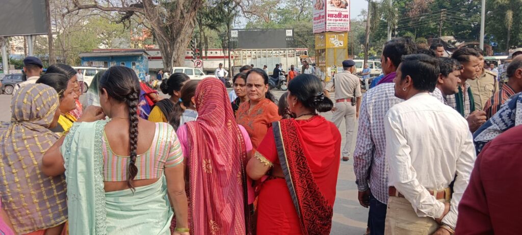 सिरगिट्टी क्षेत्र में रविवार को हुई मासूम बच्ची के साथ दुष्कर्म व हत्या जैसी हृदय विदारक घटना को लेकर आज सोमवार को आम नागरिकों ने शहर के नेहरू चौक में धरना प्रदर्शन करते हुए चक्का जाम कर दिया। बच्ची के रिश्तेदारों सहित स्थानीय नागरिकों ने हाँथ में नारे लिखे कार्ड बोर्ड लेकर सड़कों पर दौड़ने लगें व एक जुट होकर पुलिस प्रशासन के खिलाफ नारे लगाते हुए हत्यारों को फाँसी दो और उनके घरों को बुलडोजर से तोड़ने की माँग करने लगे । महिला पुरुष व युवाओं का हुजूम से जिला कलेक्टर व पुलिस अधीक्षक कार्यालय के आसपास सड़कें जाम हो गई ।