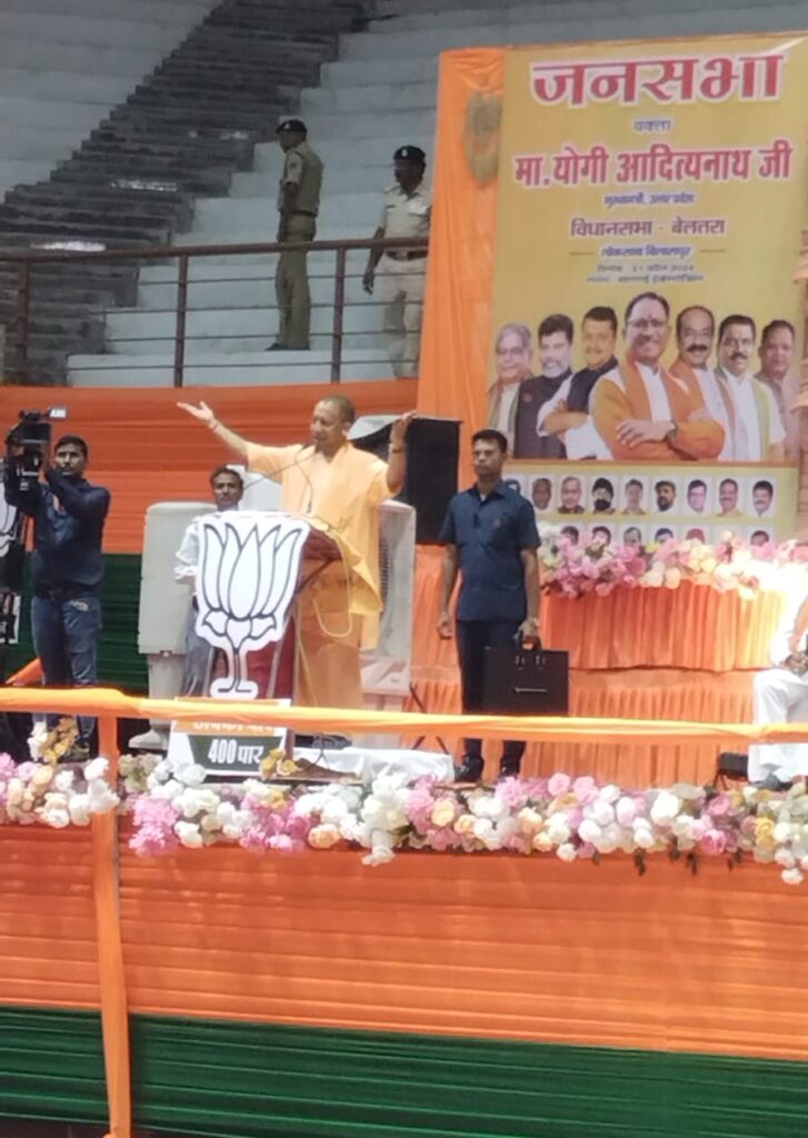 योगी आदित्यनाथ ने कहा काँग्रेस के समय मे उत्तर प्रदेश में बड़े बड़े दंगे होते थे महीनों कर्फ्यू लगा रहता था वही देश में कई बार आतंकवाद जैसी बड़ी घटना भी हुई और आतंकवादी को जेल में बिरयानी खिलाया जाता था लेकिन जब से देश मे नरेंद्र मोदी प्रधानमंत्री बने है तभी से देश की हालत सुधरी और कहीं दंगे फसाद भी नही होती है न देश मे आतंकवादी नजर आते है। अब कही कोई फटाका भी फूटता है तो पाकिस्तान डर से कहता है इसमें हमारा कोई हाँथ नही है यह सब मुमकिन हुआ तो सिर्फ नरेंद्र मोदी की वजह से ।