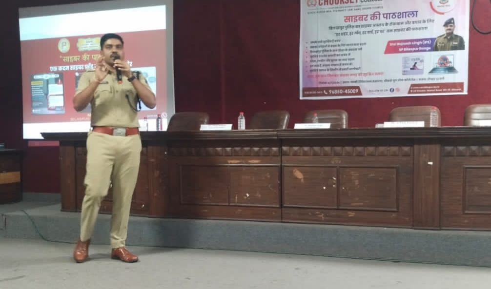 राज भारत न्यूज़ / छत्तीसगढ़ / 11 जुलाई 2024 / गुरुवार / बिलासपुर :- आम जनता में साइबर सुरक्षा के उद्देश्य से चलाये जा रहे बिलासपुर पुलिस की चेतना कार्यक्रम का आकर्षण लोगों में तेजी से बढ़ता जा रहा है इसी क्रम में आज गुरुवार को चौकसे इंजीनियरिंग कॉलेज में भी चेतना कार्यक्रम के तहत साइबर की पाठशाला का आयोजन किया गया था जिसमे सैकड़ो की तादाद में उपस्थित होकर छात्र छात्राओं के अलावा शिक्षक व शिक्षिका भी साइबर पाठशाला में साइबर अपराध से बचने ज्ञान अर्जित किया है।