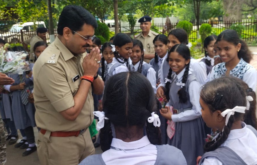 राज भारत न्यूज़ / छत्तीसगढ़ / 11 जुलाई 2024 / गुरुवार / बिलासपुर :- तोरवा थाने में गुरुवार को वृक्षारोपण कार्यक्रम में पहुँचे जिला पुलिस अधीक्षक रजनेश सिंह ने जब देखा स्कूल की मासूम छात्रायें नन्हे हाँथो में गुलाब लेकर उनका अभिवादन करने कतार बद्ध होकर खड़ी है तो वें भावुक हो गए और बड़े ही विनम्रता के साथ हाँथ जोड़ते हुए उनके अभिवादन को स्वीकार किया इस दृश्य को देख वहाँ उपस्थित पुलिस अधिकारियों सहित पत्रकार व जन प्रतिनिधि और स्थानीय निवासी भावुक हो गए।