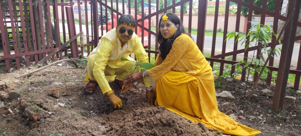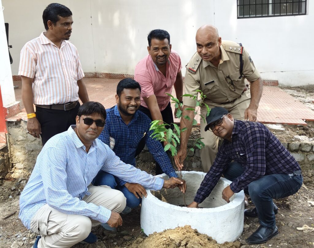 विवाह करने जा रहे युवक ने हल्दी लगे स्थिति में ही पौधा रोपड़ की इच्छा जताई जिससे उनका वैवाहिक जीवन मंगलमय हो और किया थाने परिसर में वृक्षारोपण ।