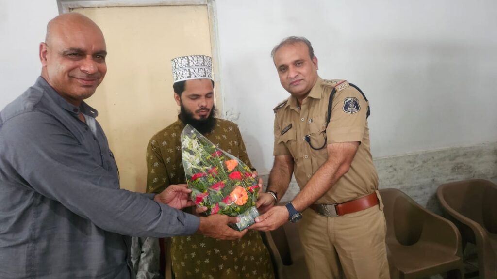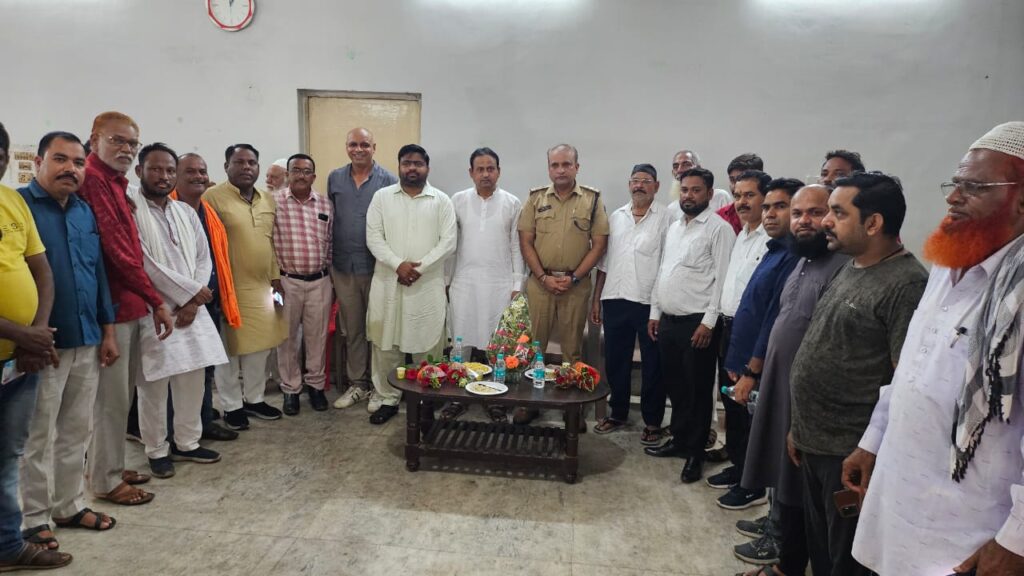 शांति समिति की बैठक में दोनों थाना प्रभारी विजय चौधरी व राहुल तिवारी का जन प्रतिनिधि और गणमान्य नागरिकों ने पुष्प गुच्छ देकर सम्मान किया वही उपस्थित मुस्लिम समाज के अध्यक्ष व वरिष्ठ जनों का पुलिस ने पुष्प गुच्छ देकर सम्मान किया है।