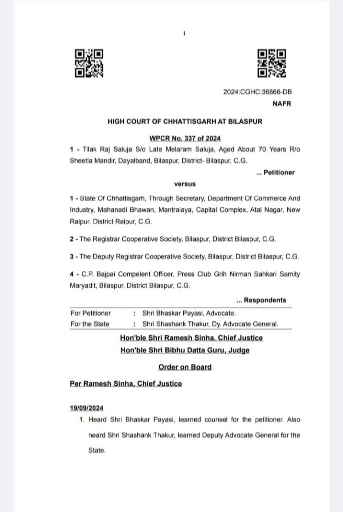 ● बिलासपुर प्रेस क्लब गृह निर्माण सहकारी समिति के पूर्व अध्यक्ष के खिलाफ एफआईआर दर्ज कराने पेश की गई थी याचिका