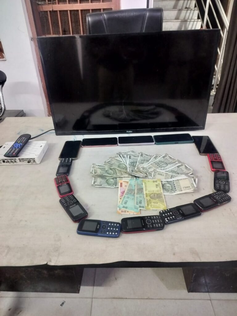 ● 05 नग एन्ड्राईड मोबाईल, 09 नग कीपैड मोबाईल, 01 नग टीवी, 03 नग सटटा पटटी, एक नग रिमोट, एक डिश टीवही एवं नगदी रकम 19120 रूपये कुल लगभग 80,000 रू. का मशूरका जप्त
