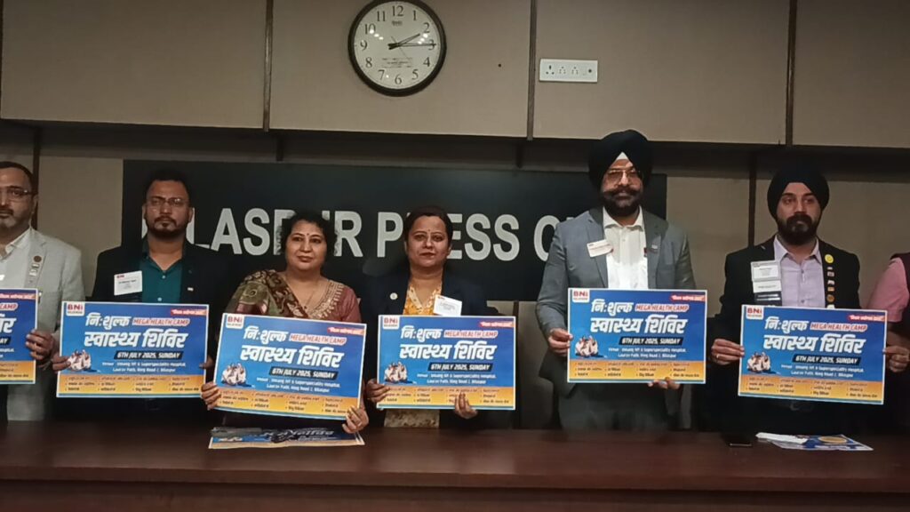 राज भारत न्यूज़ / छत्तीसगढ़ / बिलासपुर / सिटी समाचार :-जनस्वास्थ्य के क्षेत्र में एक महत्वपूर्ण पहल करते हुए, BNI BELIEVERS के सौजन्य से आगामी 6 जुलाई रविवार को एक विशाल निःशुल्क स्वास्थ्य जांच शिविर का आयोजन किया जा रहा है। यह शिविर सुबह 9:00 बजे से शाम 5:00 बजे तक “उमंग IVF एवं सुपर स्पेशलिटी हॉस्पिटल, गौरव पथ, रिंग रोड नंबर 2, बिलासपुर” में आयोजित होगा। इस शिविर का उद्देश्य आमजन को गुणवत्तापूर्ण चिकित्सकीय परामर्श व सुविधाएं एक ही स्थान पर निःशुल्क उपलब्ध कराना है। आयोजक डॉ किरणपाल सिंह चावला ने सहयोगियों की टीम के साथ बिलासपुर प्रेस क्लब में पत्रकारों से चर्चा करते बताया कि शिविर में 17 से अधिक विशेषज्ञ चिकित्सकों की टीम विभिन्न स्वास्थ्य समस्याओं के लिए निशुल्क परामर्श देगी।इससे यह लाभ होगा कि लोगों को बीमारी से पहले ही उसका संकेत मिल जाएगा और बेहतर इलाज समय रहते हो जाएगा। इस दिन शिविर में चिकित्सा सेवाएं देने के लिए प्रसूति एवं स्त्री रोग विशेषज्ञ बांझपन और IVF, कान रोग, हकलाना, आंखों की जांच, दंत चिकित्सा, पैथोलॉजी, लेज़र एवं गहन सर्जरी, हृदय एवं गुर्दा रोग, प्लास्टिक सर्जरी, शिशु रोग, पाचन तंत्र, रेडियोलॉजी, तंत्रिका तंत्र, फेफड़े व सामान्य रोग जैसी सेवाएं देने वाले अनुभवी डॉक्टर जैसे