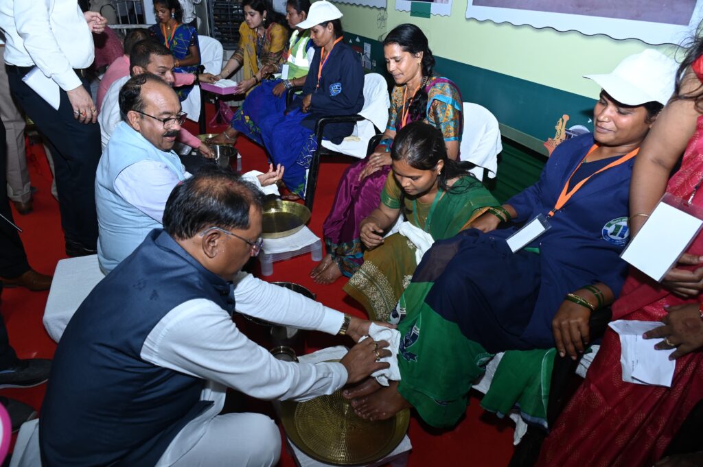 राज भारत न्यूज़ / छत्तीसगढ़ / बिलासपुर / शहर समाचार :- जब मुख्यमंत्री विष्णु देव साय और उप मुख्यमंत्री अरुण साव ने बिलासपुर के बहतराई स्टेडियम में स्वच्छता दीदियों के पैर पखारे, तो यह सम्मान पाकर स्वच्छता दीदियां भावुक हो उठीं। हजारों लोग इस भावुक और प्रेरक क्षण के साक्षी बने।