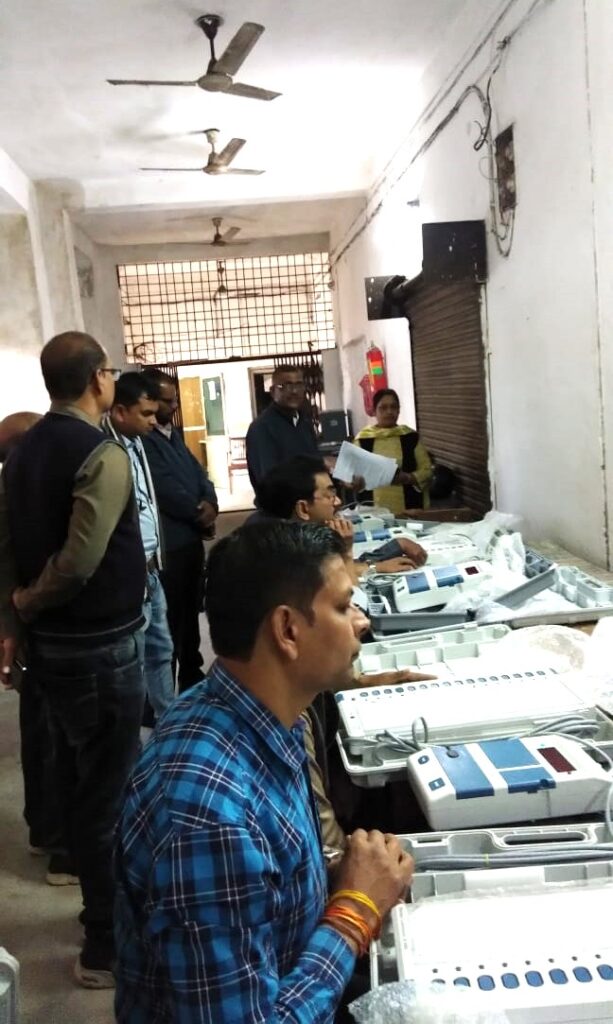 छत्तीसगढ़ / बिलासपुर / 28 दिसंबर 2022 / आगामी विधानसभा चुनाव को ध्यान में रखते हुये जिला निर्वाचन कार्यालय को लगभग ढाई हजार नये इव्हीएम मशीन प्राप्त हुए हैं। निर्वाचन आयोग के निर्देश पर इलेक्ट्रानिक्स कार्पोरेशन ऑफ इण्डिया, हैदराबाद से ये मशीने मिले हैं। इन मशीनों की जांच यहां इव्हीएम वेयर हाऊस में की जा रही है। उप जिला निर्वाचन अधिकारी ललिता भगत ने बताया कि इसीआइएल कम्पनी हैदराबाद द्वारा जिले को 2450 कण्ट्रोल यूनिट एवं 2484 बैलट यूनिट प्रदान किये गये हैं। जिले के 37 मास्टर ट्रेनर्स एवं 8 सब इंजीनियरों एवं तकनीकी विशेषज्ञों को इसकी जांच कार्य में लगाया गया है। निर्वाचन आयोग के निर्देशानुसार स्थापित नियमों के अनुरूप इन मशीनों की फिजिकल एवं फंशन की जांच की जा रही है। इस अवसर पर उप जिला निर्वाचन अधिकारी ललिता भगत सहित जिला निर्वाचन कार्यालय के कर्मचारी उपस्थित थे।