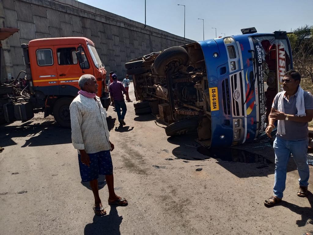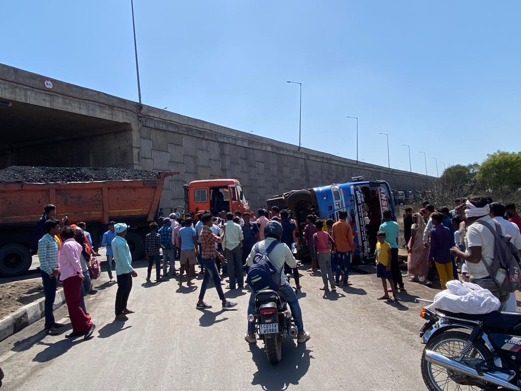 विवरण :- मामले का संक्षिप्त विवरण इस प्रकार है कि दिनांक-04/03/2023 को जरिये दूरभाष थाना कोनी डायल-112 ईगल-1 को सूचना मिला कि लोखण्डी-तुर्काडीह ओव्हर ब्रिज के पास अंशुमान ब्रदर्श बस एवं ट्रेलर की भिड़त हो गई है, जिससे यात्रीगण गंभीर रूप से घायल हो गये है, की सूचना पर थाना प्रभारी कोनी नुपुर उपाध्याय, उ.पु.अ. (प्रशिक्षु) के नेतृत्व में थाना कोनी पुलिस स्टाफ एवं डायल-112 की टीम मौके पर पहुंची, जहां पर आम लोगों द्वारा भीड़ एकत्रित किया गया था, जहां पर कानून व्यवस्था बनाये रखने हेतु मौके पर पुलिस स्टाफ द्वारा आम नागरिकों की सहायता से आहतों को तत्काल डायल-112 एवं थाना के पुलिस पेट्रोलिंग वाहन की सहायता से उपचार हेतु सिम्स बिलासपुर भर्ती किया गया, साथ ही आसपास के लोगों से पूछताछ करने पर पाया कि अंशुमान ब्रदर्श में करीबन 15-20 यात्री बिलासपुर से खोंगसरा की ओर सफर कर रहे थे, करीबन 12ः45 बजे, घुटकू कोल डिपो की तरफ से विपरीत दिशा से आ रही सिगमा ट्रेलर क्रमांक-CG10R-1902 जिसमें कोयला लोड़ था, के चालक द्वारा ट्रेलर को तेजी एवं लापरवाही पूर्वक चलाते लाकर ओव्हरब्रिज के नीचे रोड़ से आ रही अंशुमान बस क्रमांक-CG10G-1054 को ठोकर मारकर एक्सीडेंट कर दिया, जिससे बस पलट गई और बस में बैठे 2 यात्रियों को गंभीर चोटे आई एवं अन्य यात्रियों को साधारण चोटें आई थी, जिन्हें तत्काल डायल-112 एवं थाना पेट्रोलिंग वाहन की सहायता से उपचार हेतु सिम्स बिलासपुर भेजा गया, मौके पर ट्रेलर एवं बस के ड्राईवर भाग गये, जिसस भीड़ जमा होने लगा, जिसे थाना कोनी पुलिस एवं थाना सकरी पुलिस के स्टाफ द्वारा शांत कराया गया है, पृथक से आरोपी चालक के विरुद्ध कार्यवाही की जावेगी।