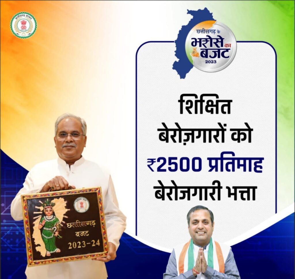 भविष्य की ठोस बुनियाद के साथ आम जनता की समृद्धि और सभी वर्गों के कल्याण तथा रोजगार मूलक विकास कार्यों के लिए सार्थक और सुदृढ़ प्रयास है। ग्रामीण क्षेत्र एवं सामाजिक सुरक्षा के साथ शिक्षित बेरोजगारों को ₹2500 प्रतिमाह बेरोजगारी भत्ता देने का प्रावधान। राजीव गांधी किसान न्याय योजना में इनपुट सब्सिडी के लिए₹ 6800 करोड़ का प्रावधान किया गया है।