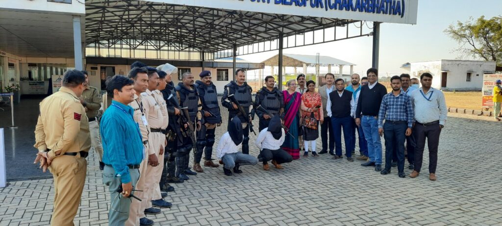 छत्तीसगढ़ / बिलासपुर / शुक्रवार 30 दिसंबर 2022 / बिलासा देवी केवट एयपोर्ट पर आज दिनांक 29.122022 को सफलतापूर्वक एंटी हाईजेक मॉक ड्रिल एक्सरसाईज का आयोजन किया गया। यह ड्रिल ब्यूरो ऑफ सिविल एविएशन सिक्योरिटी के गाईडलाईस के द्वारा साल में एक बार किया जाता है। जिसके चेयरमेन जिला कलेक्टर होते हैं और इस एरोड्रोम कमेटी के मेंबर एसपी, एयरपोर्ट के नोडल अधिकारी, एयरपोर्ट डायरेक्टर सीएमएचओ सीएसओ इंटेलिजेंस ब्यूरो, कासो एयरलाइंस स्टेशन मैनेजर मनोचिकित्सक भाषाविज्ञानी एवं स्थानीय थाने के अधिकारी होते. हैं। यह ड्रिल एयरपोर्ट पर वास्तविक रूप से आतंकवादियों के द्वारा विमान की अपहरण की घटना होने पर यात्रियों एवं विमान की कैसे सुरक्षा किया जाता है। इसी लिए यह ड्रिल किया जाता है।