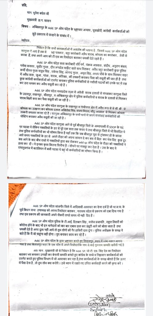 छत्तीसगढ़ / 15 मार्च 2023 / बिलासपुर :- 13 मार्च को गृह विभाग ने एक नवीन पदस्थापना की सूची जारी की है जिसमे सुकमा के अतिरिक्त पुलिस अधीक्षक ओम प्रकाश चंदेल को एन्टी क्रप्शन ब्यूरो मुख्यालय में नवीन पदस्थापना देते हुए उन्हें एसीबी का एडिशनल एसपी बनाया गया है। जानकारी के मुताबिक सुकमा के अतिरिक्त पुलिस अधीक्षक ओम प्रकाश चंदेल पर सरगुजा अतिरिक्त पुलिस अधीक्षक रहने के दौरान कई गंभीर आरोप लगे है जिसमे कोयले तस्करी से लेकर सरकारी वाहन को साजिश के तहत कब्जा कर वाहन की मरम्मत में लाखों रुपयों का दुरूपयोग करना जिसकी शिकायत भी हुई है साथ ही शिकायत में लोगों को डराने धमकाने व सट्टा कारोबारी के साथ मिली भगत के अलावा राज्य के बाहर से अवैध शराब का परिवहन,गाँजे की तस्करी,कोरोना काल मे शासकीय कर्मचारियों से दबाव पूर्वक कार्य करवाना, पत्रकारो को डराने धमकाने जैसे अनगिनत आरोप है।