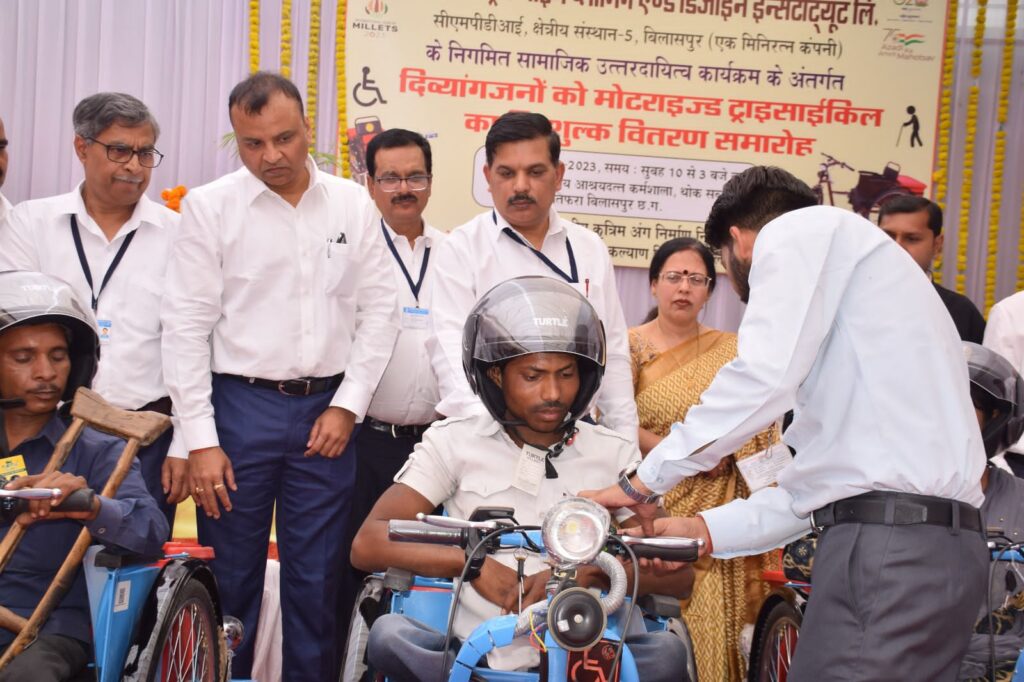 सीएमपीडीआई, आरआई-V, बिलासपुर द्वारा सीएसआर के तहत एलिम्को के सहयोग से मोटरयुक्त ट्राइसाइकिल का वितरण एक सफल कार्यक्रम था जिसने विशेष रूप से विकलांग व्यक्तियों के लिए सामाजिक कल्याण के प्रति संगठनों की प्रतिबद्धता को प्रदर्शित किया।*